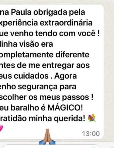 ”Minha visão era completamente diferente antes de me entregar aos seus cuidados. Agora tenho segurança para escolher meus passos”